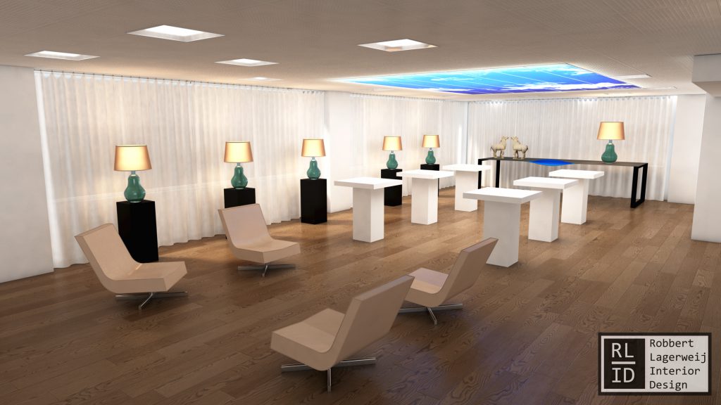 Robbert ontwikkelde een interieurontwerp/sketch up 3D tekening voor de VIP ruimte/lounge, die een ontspannen gevoel van ruimte en luxe ademt.